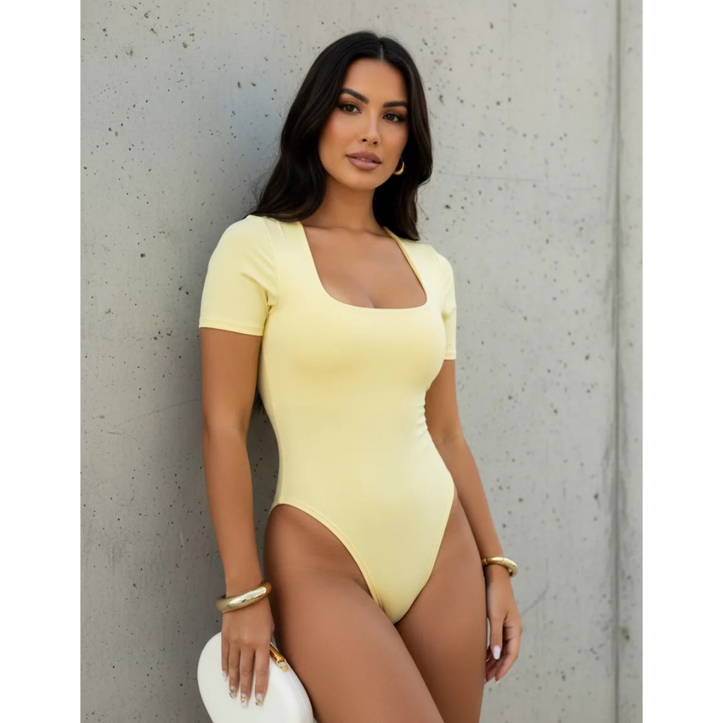Body Collant Manga Curta Decote Quadrado Feminino Suplex Premium Elegante Casual Gringa Blogueira