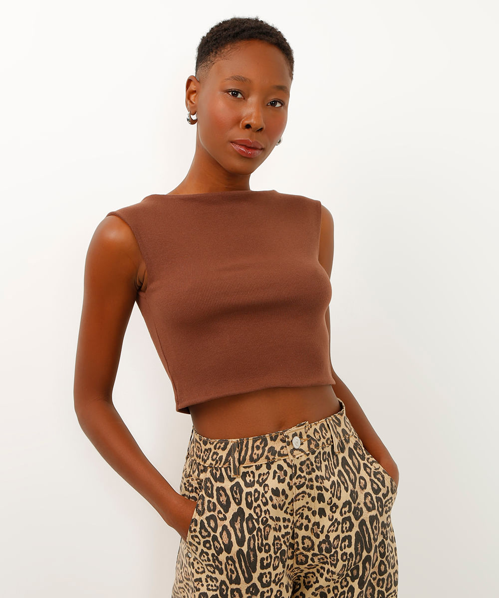 cropped de algodão decote canoa marrom