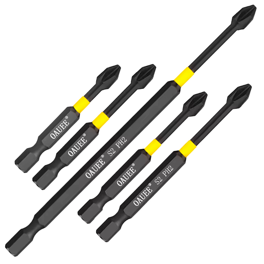 Kit com 5 bits magnéticos PH2 para parafusadeira, ideal para uso profissional ou doméstico. Fabricados em aço S2 tratado, oferecem alta dur