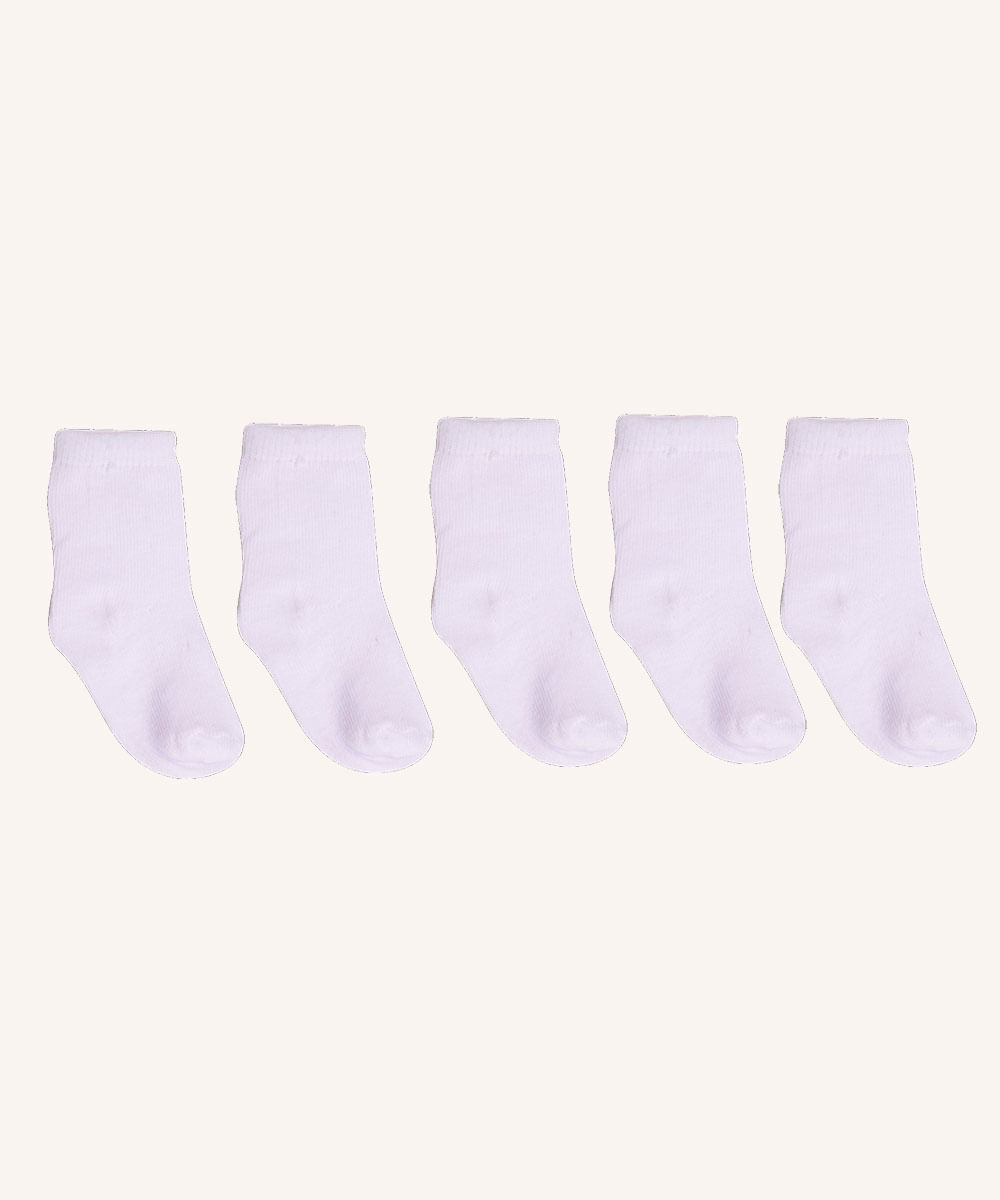 Kit composto por cinco pares de meias infantis. Feita em malha de algodão macia. O cano é médio com acabamento canelado.