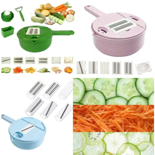 KIT MULTIFUNCIONAL DE COZINHA 12 EM 1 - CORTADOR RALADOR DESCASCADOR DE LEGUMES E VEGETAIS COM RECIPIENTE COLETOR