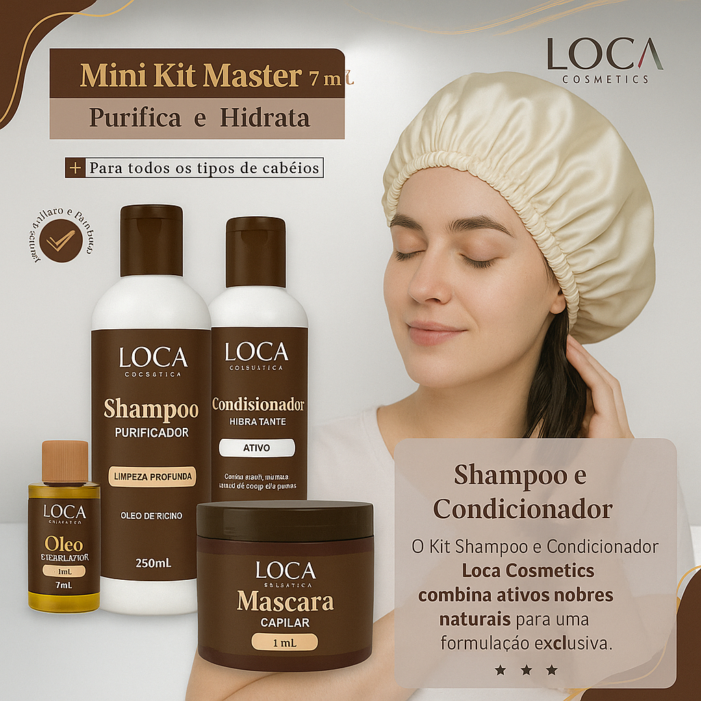 Loca Cosmetics Kit Original 5 Itens – Máscara + Shampoo + Condicionador + Óleo + Touca Cetim