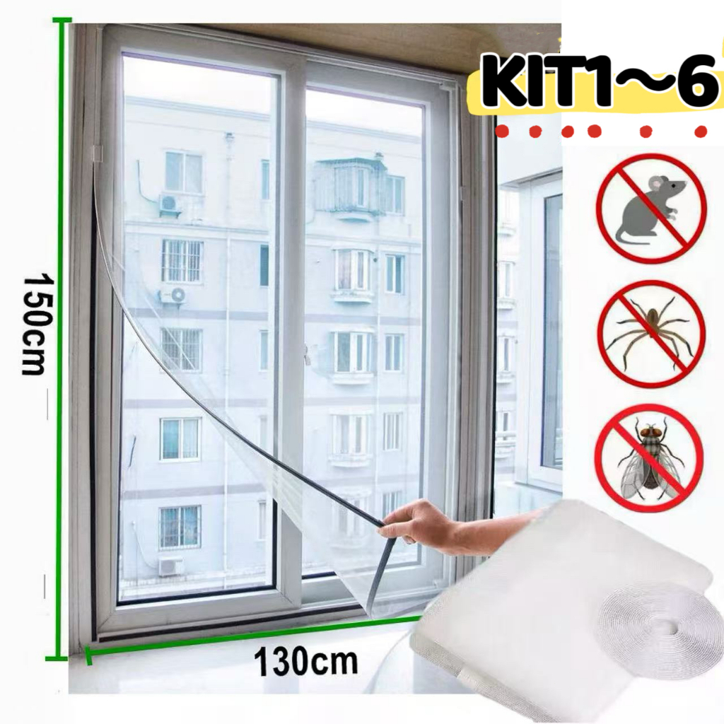 Tela Mosquiteiro Janela 130x150cm Removível com Fecho Contato e Fita Dupla Face Contra Insetos KIT1/2/3/4/5/6